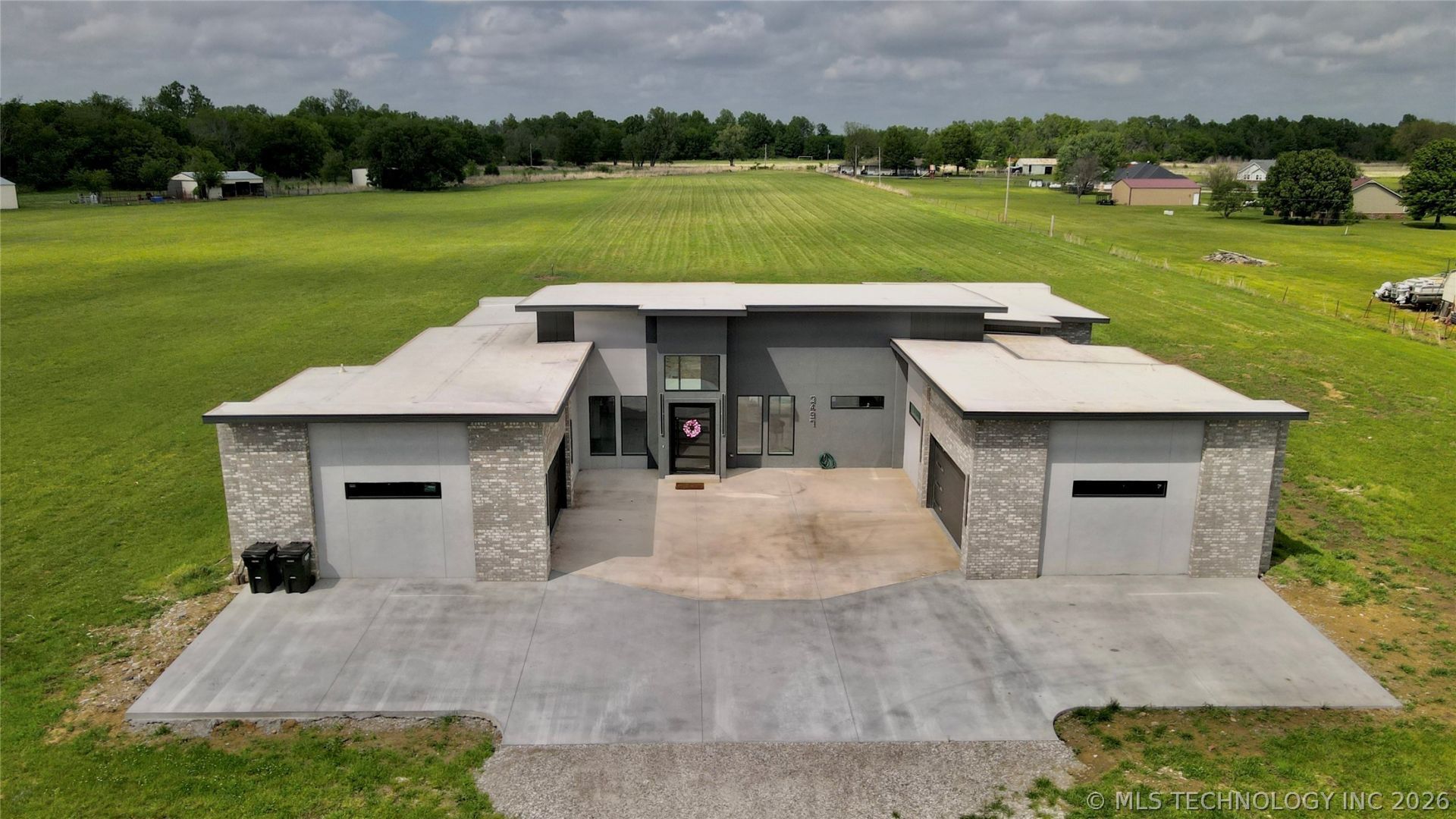 Modern Luxury + County Living = Unique Property check out this Beautiful 2026 newer construction modern style home sitting on 5 acres of Land just 6 miles from Oologah Lake. featuring luxury vinyl plank floor throughout, tile floors in all bathrooms, Master bedroom bathroom has a tub and walking shower with his and hers ceiling showers heads and sinks, 2 closets one closet with built in vanity, 4 other good size bedrooms all with walking closets, relax watching a movie with the whole crew in the movie theater room or can be a 6th bedroom if want, take care of business at the office room, living room has 17'ft tall ceilings bringing a modern contemporary looking, tall window bringing lots of natural light plenty of space for all vehicles this awesome property has 4 car garage ,driveway holds up to 6 cars. come see it in person before is gone! 12 Minute drive to Owasso and 25 min to Tulsa downtown