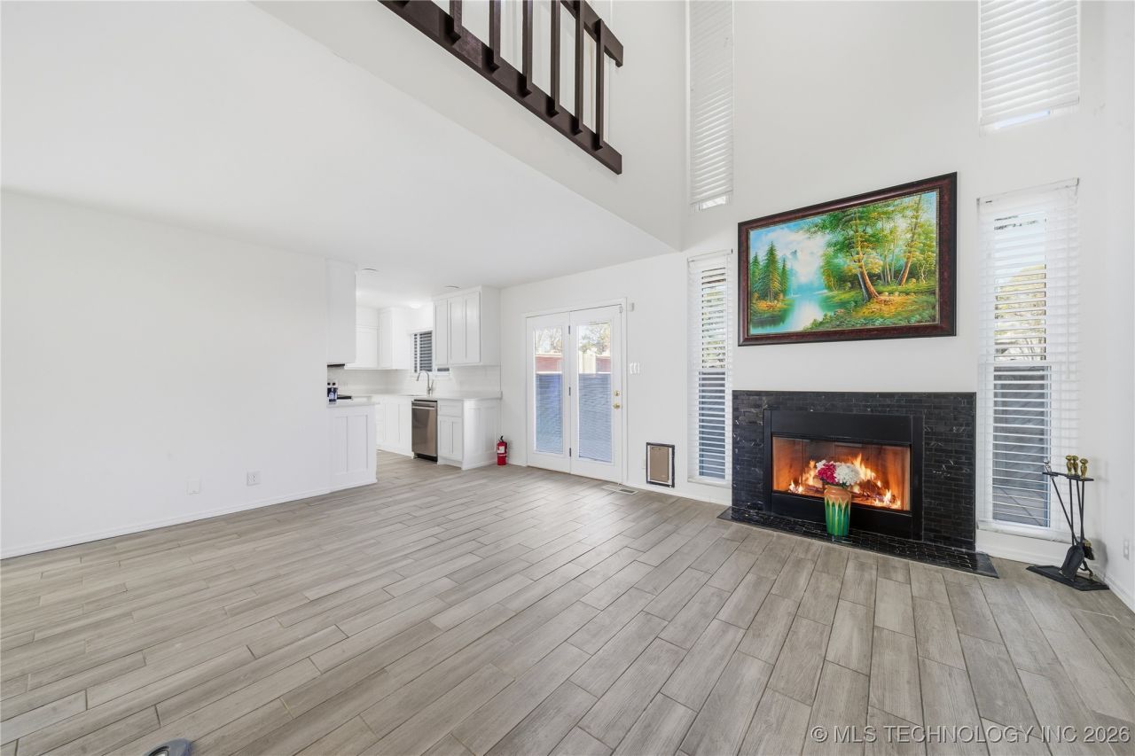 Back on the market-no fault of the property. Beautifully renovated townhome ready for its new owner. This spacious 2-bedroom, 2.5-bath home features vinyl windows installed within the past five years, providing excellent energy efficiency. The fully updated kitchen offers new cabinetry, quartz countertops, and stainless steel appliances, opening to a bright living and dining area with vaulted ceilings-ideal for everyday living and entertaining. The living room includes a wood-burning fireplace, and a convenient half bath is located on the main level. Upstairs, both bedrooms are generously sized and feature private en-suite bathrooms. Recent updates include lighting, tile flooring, carpet, fresh interior paint, and a newer HVAC system with a transferable service agreement through 2031. Conveniently located near Saint Francis Hospital, LaFortune Park, Oral Roberts University, and the Southern Hills area, with easy access to shopping, dining, and major roadways.